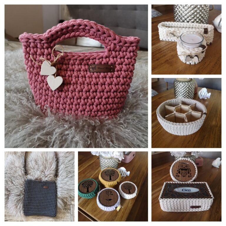 háčkované bytové doplňky, kabelky, hračky